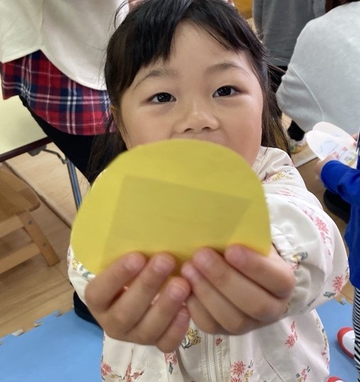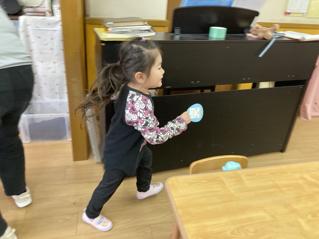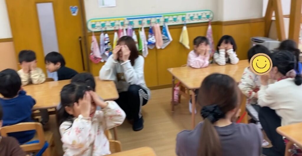 上手に目隠ししています😊この間に先生たちが、やや必死にカードを隠しました(笑)