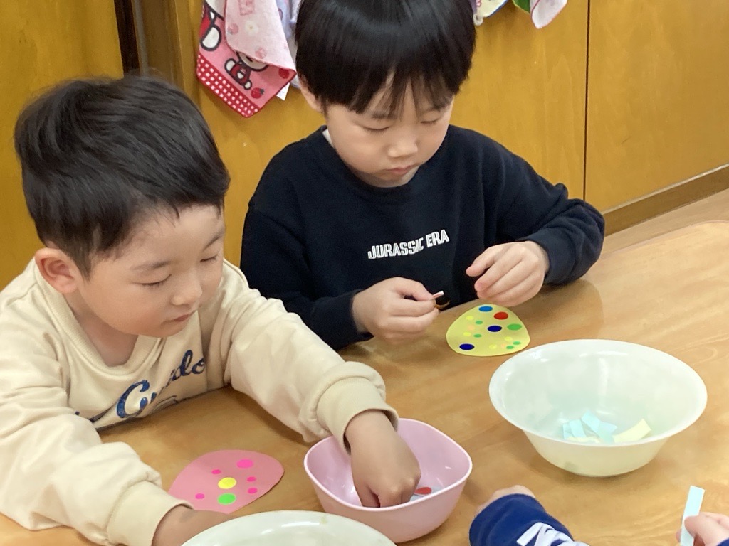 その後、卵型カードを部屋に隠して「なんちゃってエッグハンティング🥚」を楽しみました!