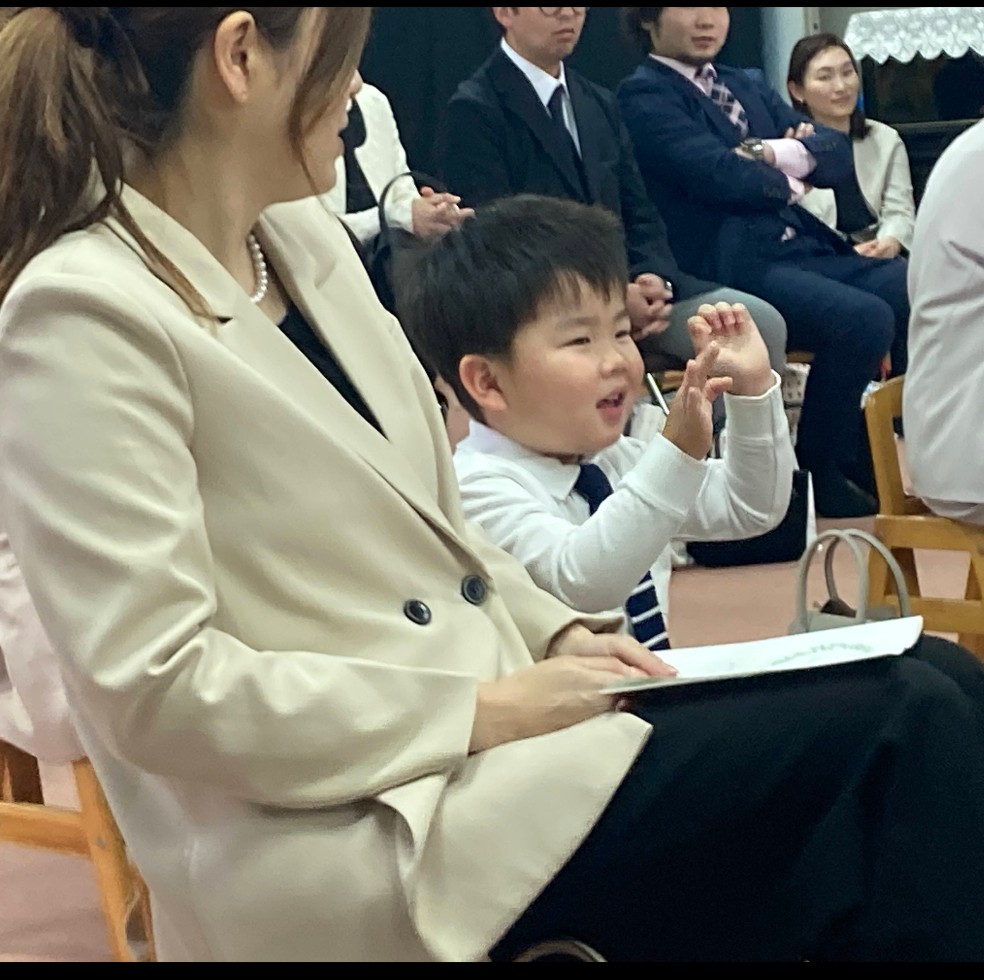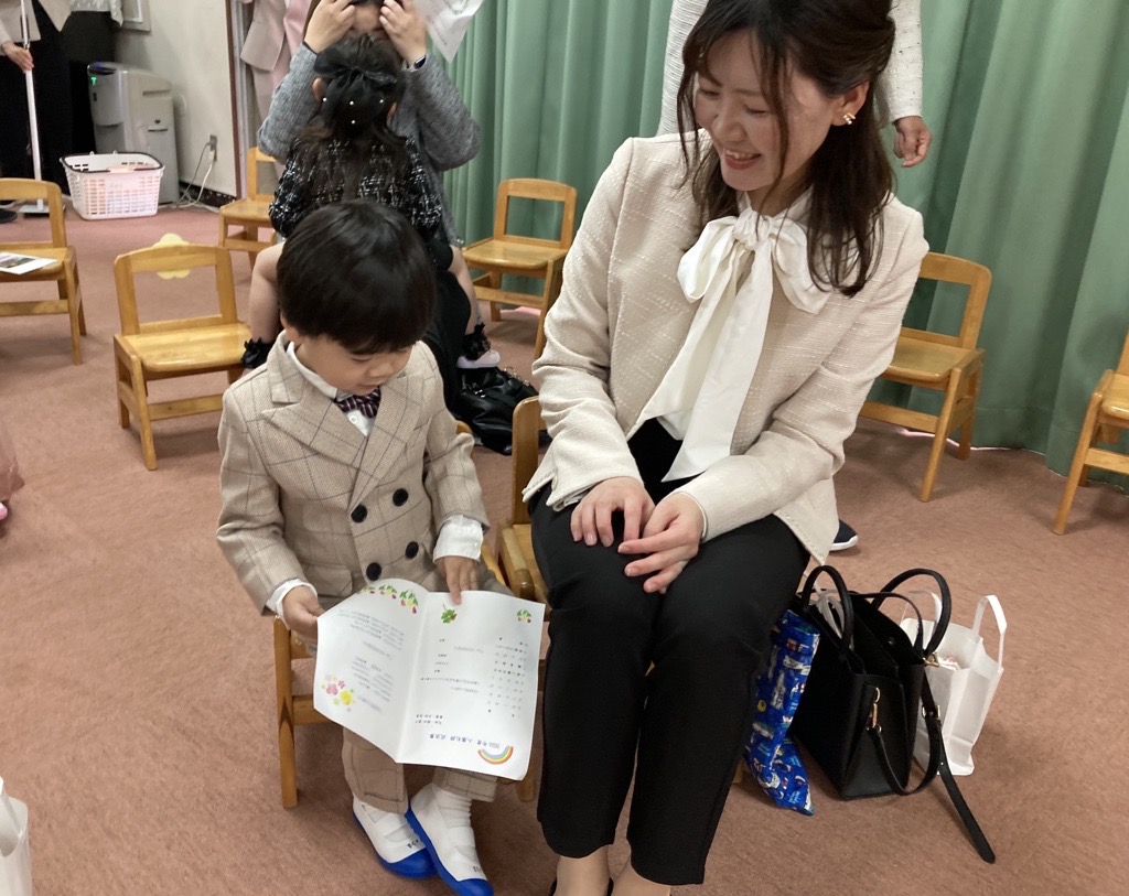入園礼拝が始まるまでの待ち時間、お母さんと一緒にちょこんと座って待つ姿も可愛かったですよ!